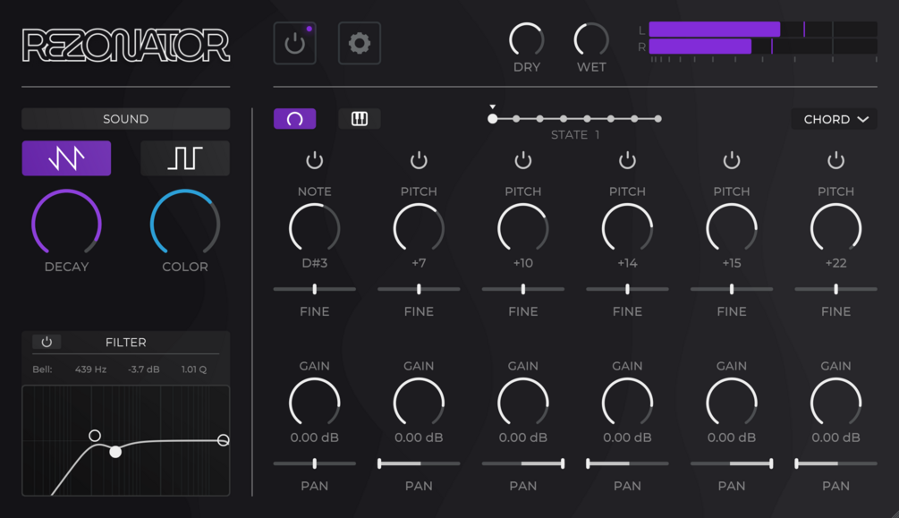 Harmonic resonator, includes 6 tunable resonators, easy controls, effects and a simple interface.